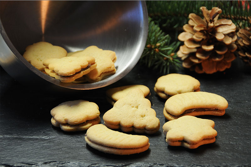 Wer liebt denn nicht zum Frühstück diese leckeren Nuss- Nougat Aufstriche. Genau dieser kommt bei uns zwischen 2 gold gelb gebackenen Keksen. 22,00€ / kg